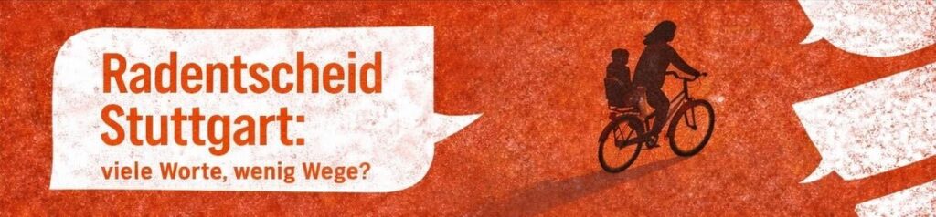 Der Zweirat Stuttgart veranstaltet am Sonntag, 25.01.2026 um 15:30 Uhr im Kulturzentrum Merlin Stuttgart (Augustenstraße 72) eine öffentliche Podiumsdiskussion unter dem Motto „Radentscheid Stuttgart: Viele Worte, wenig Wege“ zu dem 2019 beschlossenen Radentscheid in Stuttgart.